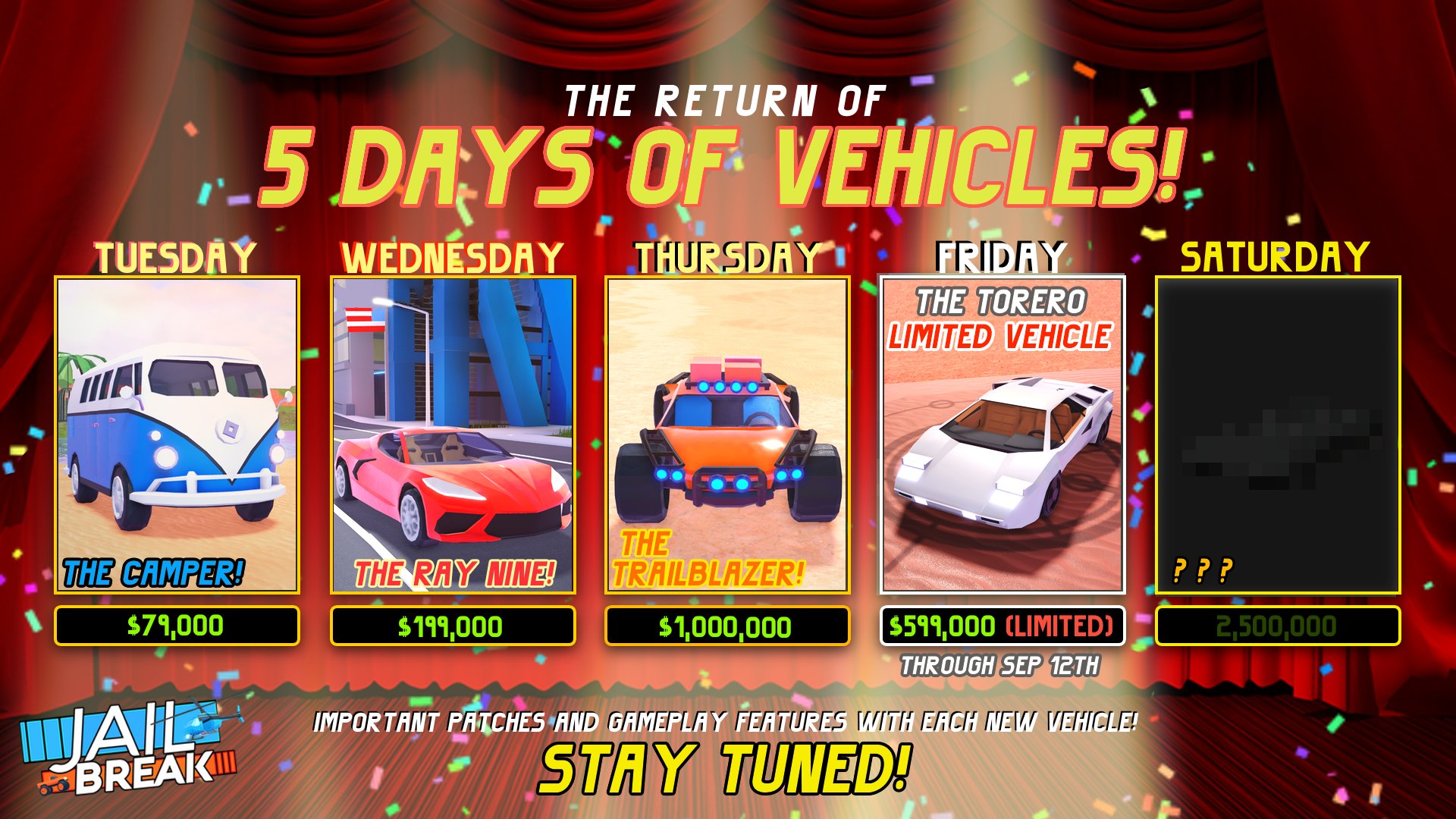 Jailbreak 5 Days 5 Vehicles The 4th New Vehicle Is Facebook