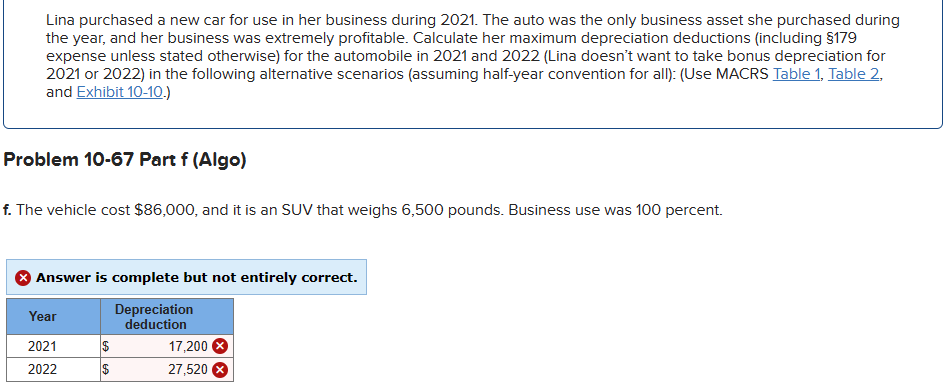 Solved Lina Purchased A New Car For Use In Her Business Chegg Com